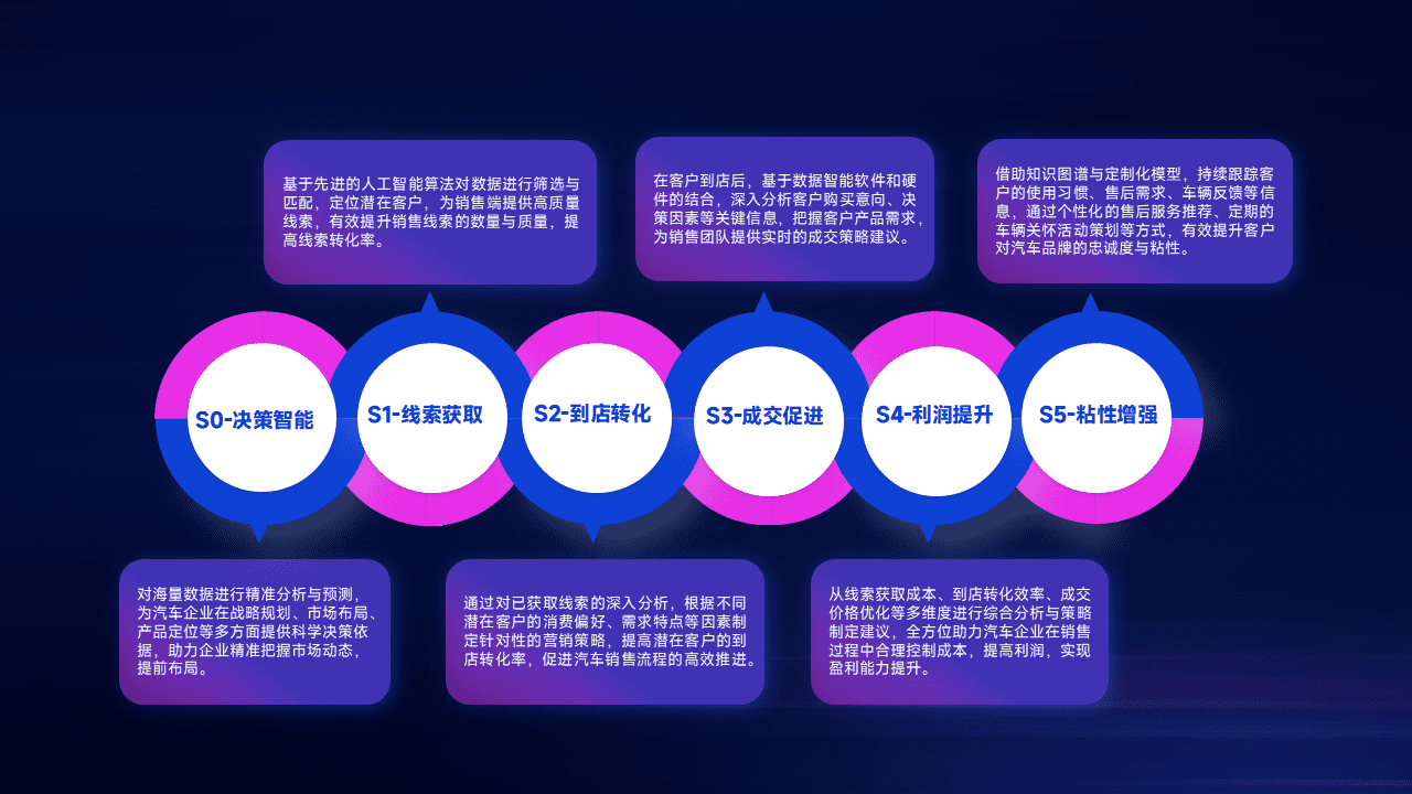 通过拓宽潜在客户来源、、、优化线索分配并提高到店转化率,,,,以增强销售效率。。。同时,,,利用线索数据不断优化分析模型,,,,有效提升转化率,,,,扩大营销影响力。。。